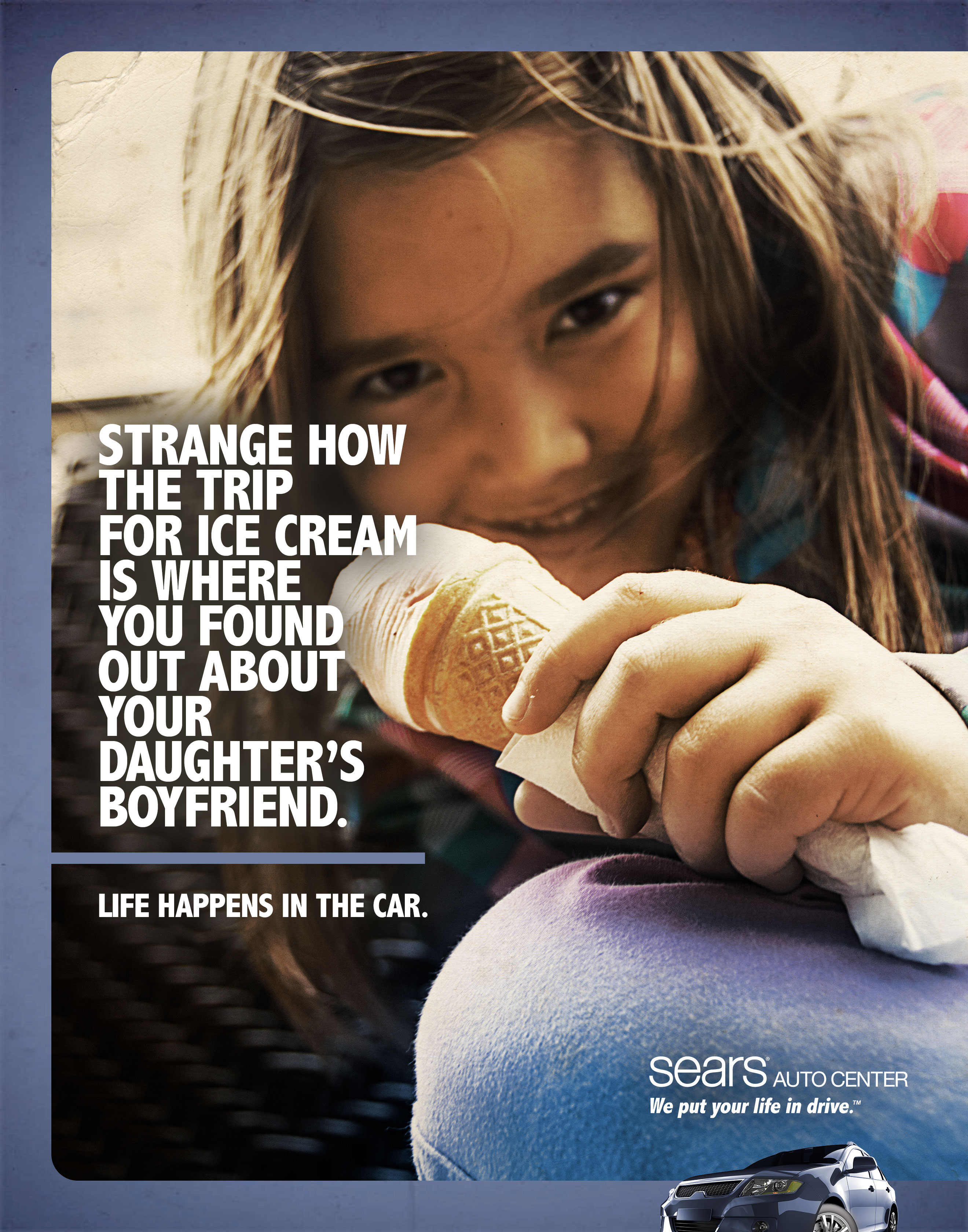 Sometimes the biggest moments in life happen in the car. A first kiss, a breakup, or an honest conversation with your child. Life happens in the car and we wanted to let people know that Sears Auto can help keep your life in motion.